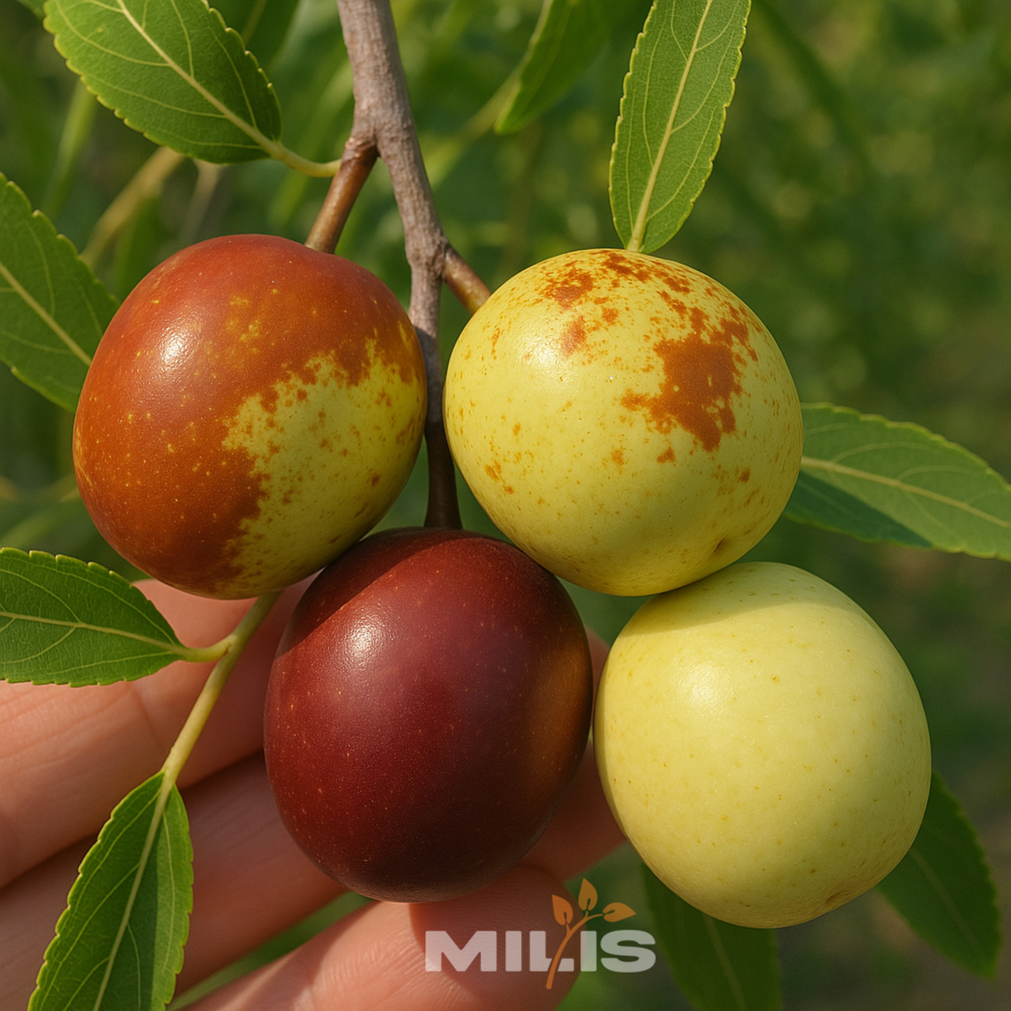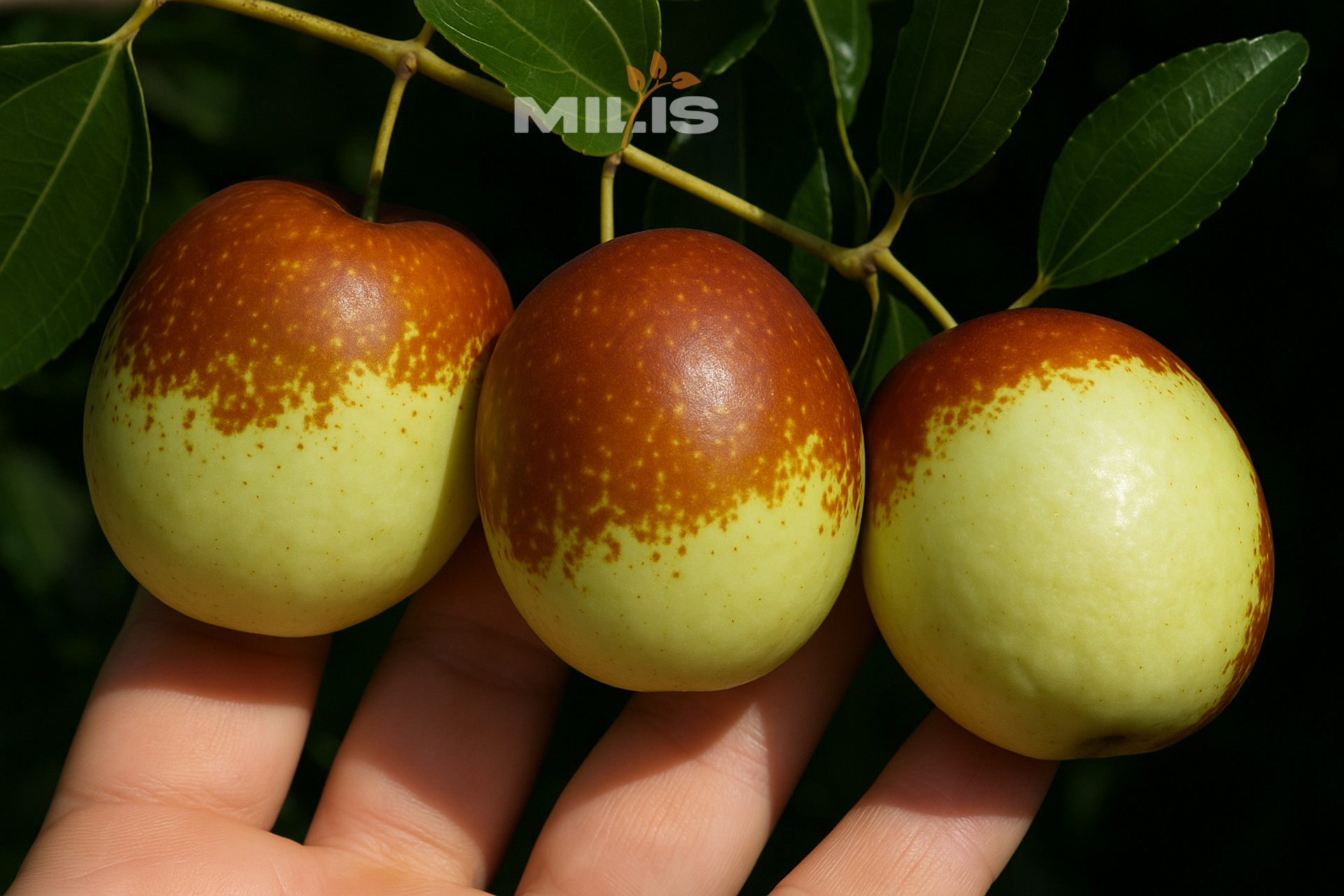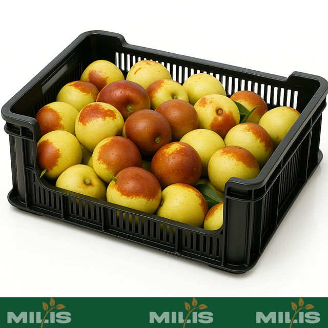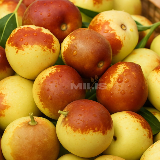 Μεσαίος-μεγάλος καρπός, στρογγυλός, γλυκός. Σάρκα Κρεμώδης-λευκή και τραγανή.